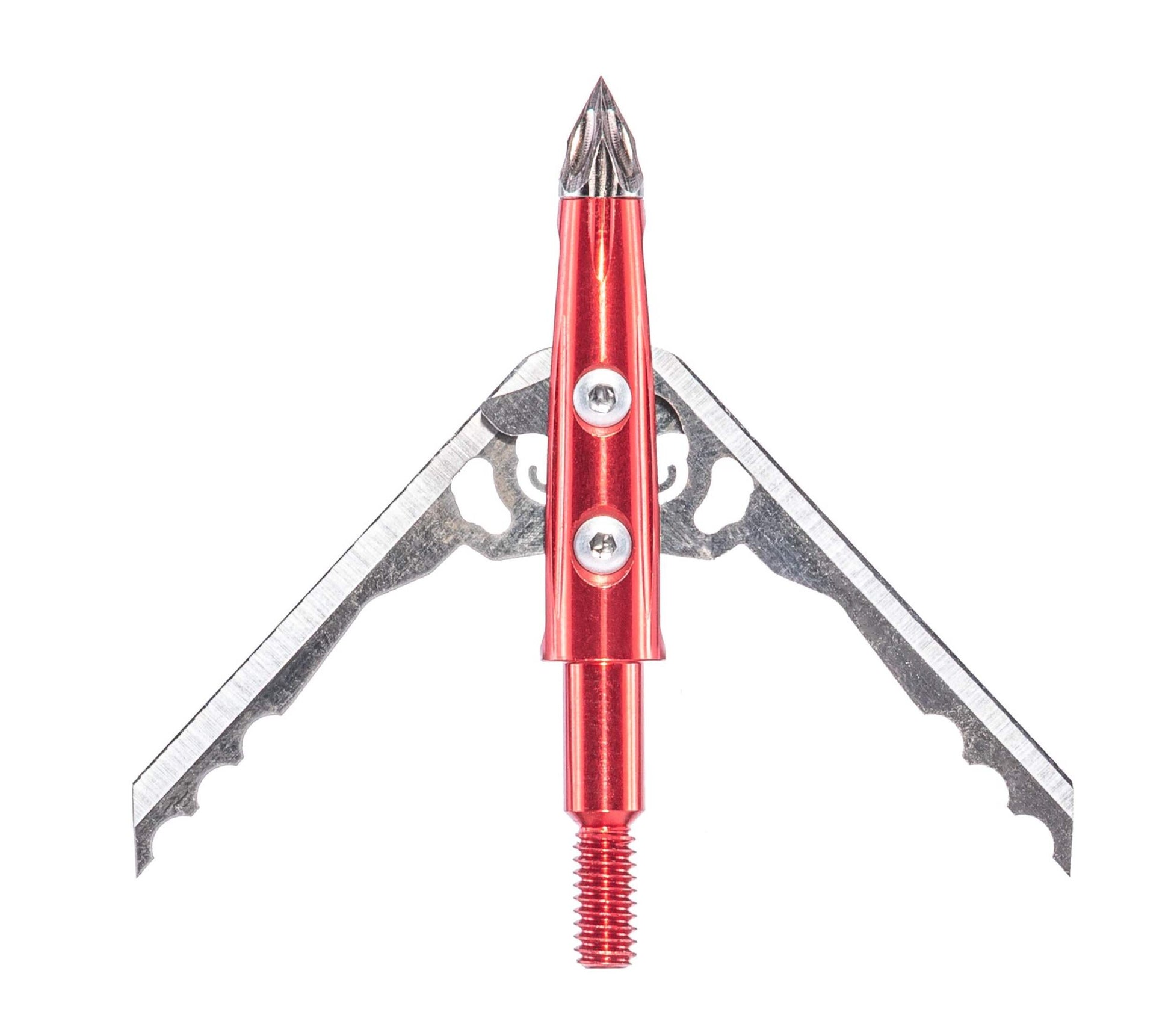 The Rage X-treme NC Chisel-Tip Mechanical Broadhead offers expert-level design, with a no-collar system that maintains blade position during flight without the need for a shock collar or O-ring. This ensures pinpoint accuracy and powerful bone-piercing penetration. With a 2.3" width and durable .039" stainless steel blades, this broadhead creates a devastating wound channel. Crafted with a super-tough 6061-T6 aircraft anodized-aluminum ferrule, the Rage X-treme NC Chisel-Tip Mechanical Broadhead is built to last.